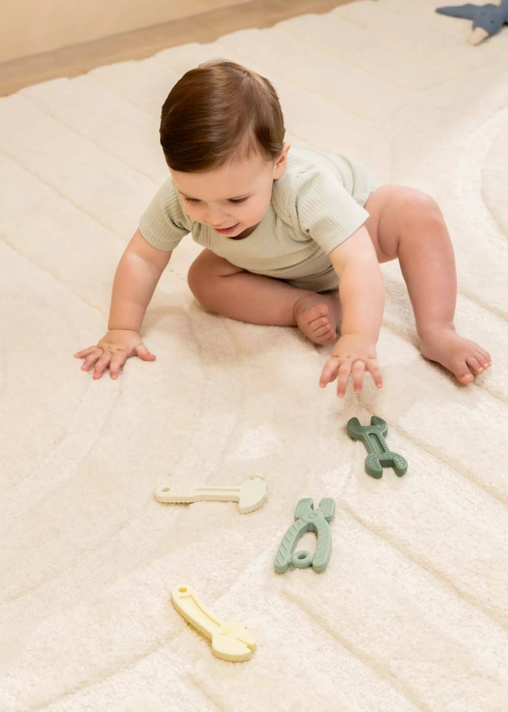 The tools are fun and textured, offering cognitive stimulation through the senses. They fit in small hands and are easy to grip, so that your little one can grasp, squeeze, pinch, throw, and pick, which are some important motions in the motor skills development in child.