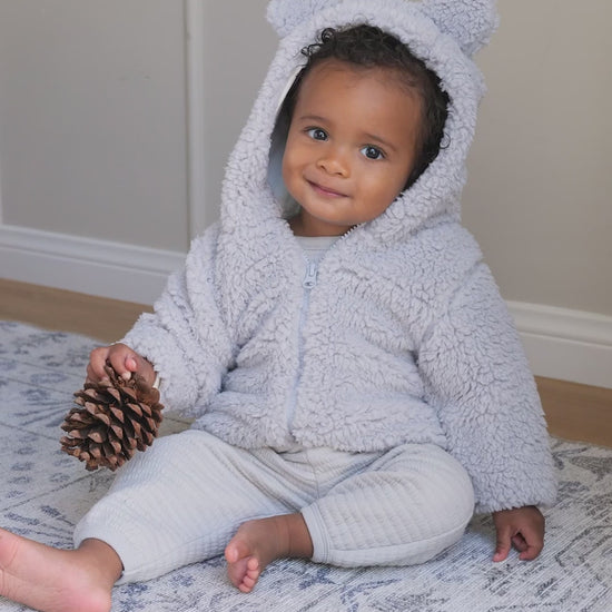 Keep your little cubs warm and cozy in this Bear Jumpsuit. Front zip for easy changes, faux fur on the outside and a soft jersey liner on the inside, this jumpsuit is made for the coziest of cuddles.